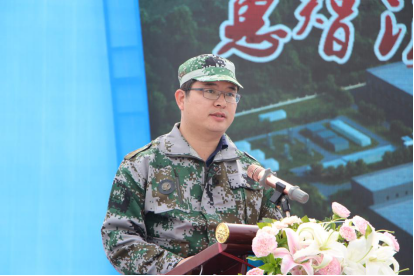 華中公司黨總支書記、工會主席彭超為“準(zhǔn)軍事化管理”揭牌